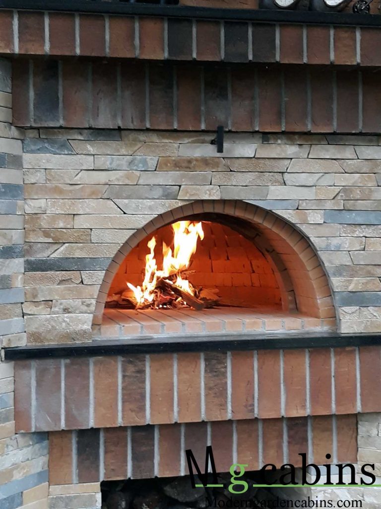Oven construction is lightweight refactory insulation covered inside with 20mm friebrick to heat up fast and give authentick brick oven apperance